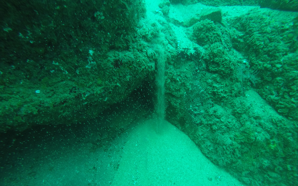 ALSO THERE IS A SPECIAL FENOMEN WE CAN SEE ALONG THE CANYON CALLED SAND FALLS, WITH THE CHANGE OF TIDES OR THE MOVEMENT OF THE SURGE MAKE THE SAND ACCOMULATED IN THE DIFERENT SHELFS OF THE WALL TO FALL LIKE A CASCADE DOWN THE CANYON.